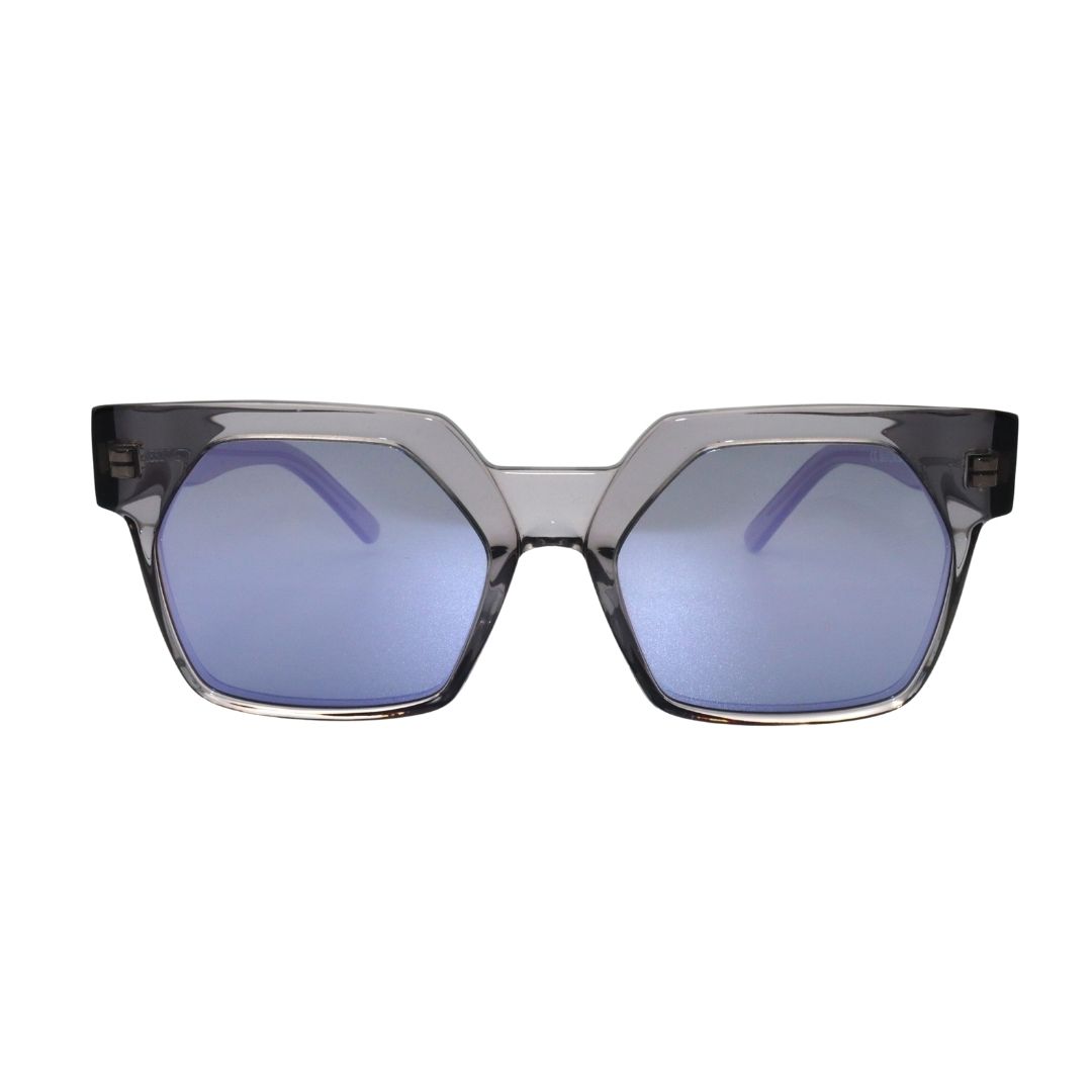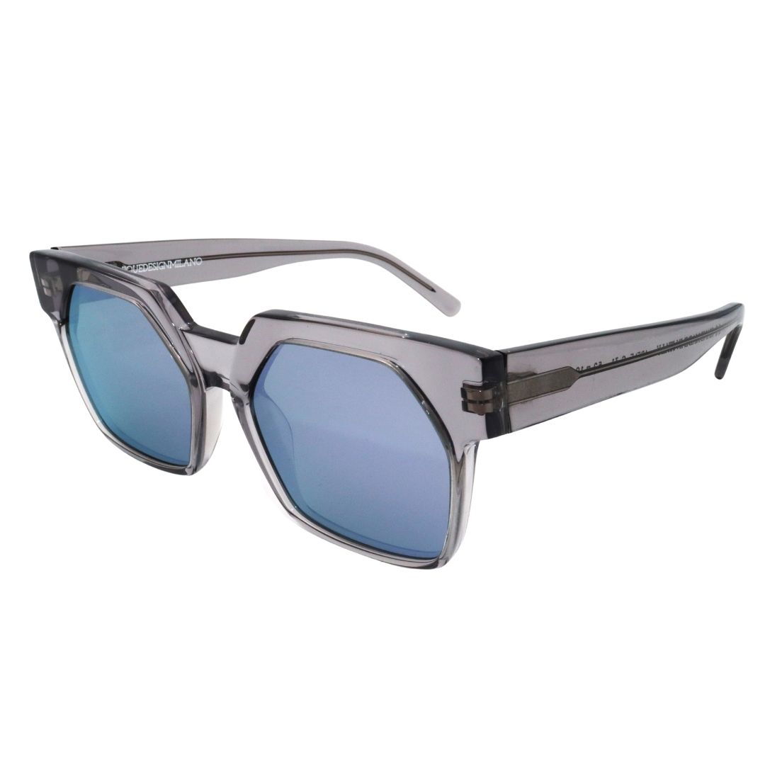 Unique Design Milano รจ una giovane azienda che produce artigianalmente in Italia, precisamente nel comune di Valdobbiadene, occhiali da sole e da vista. Combina la tradizionale qualitร dellโ artigianato e dei materialiย con una speciale attenzione per lโ innovazione di forme, design e colori. Il risultato รจ un prodotto di qualitร e dallo stile originale. Questo modello si presenta in acetatoย grigio cristallo e lenti grigie specchiate viola