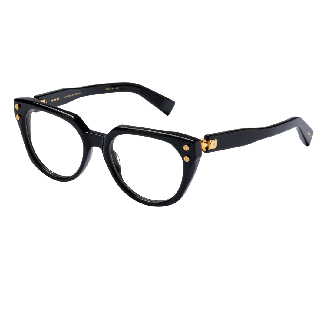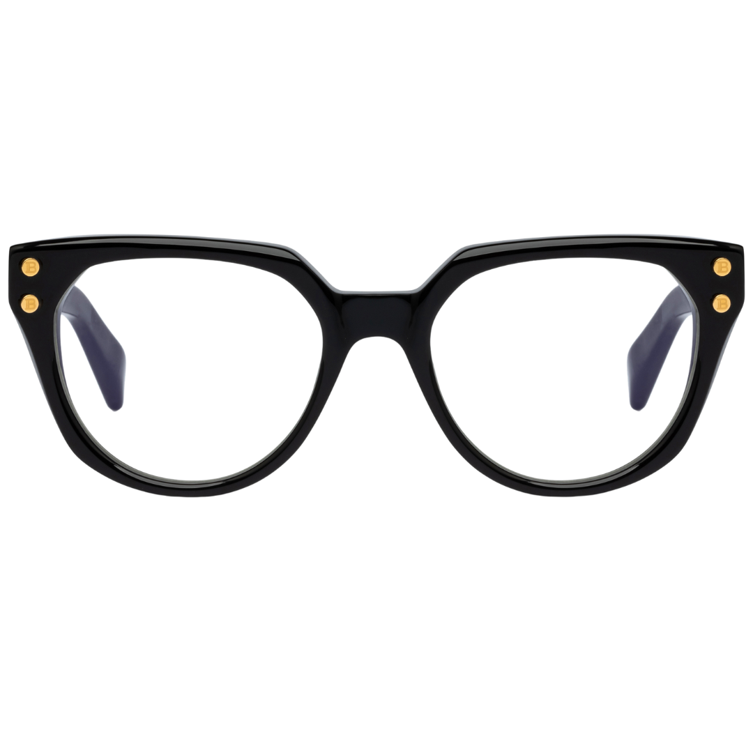 Occhiale Balmain Paris in acetato giapponese nero con fregi oro.