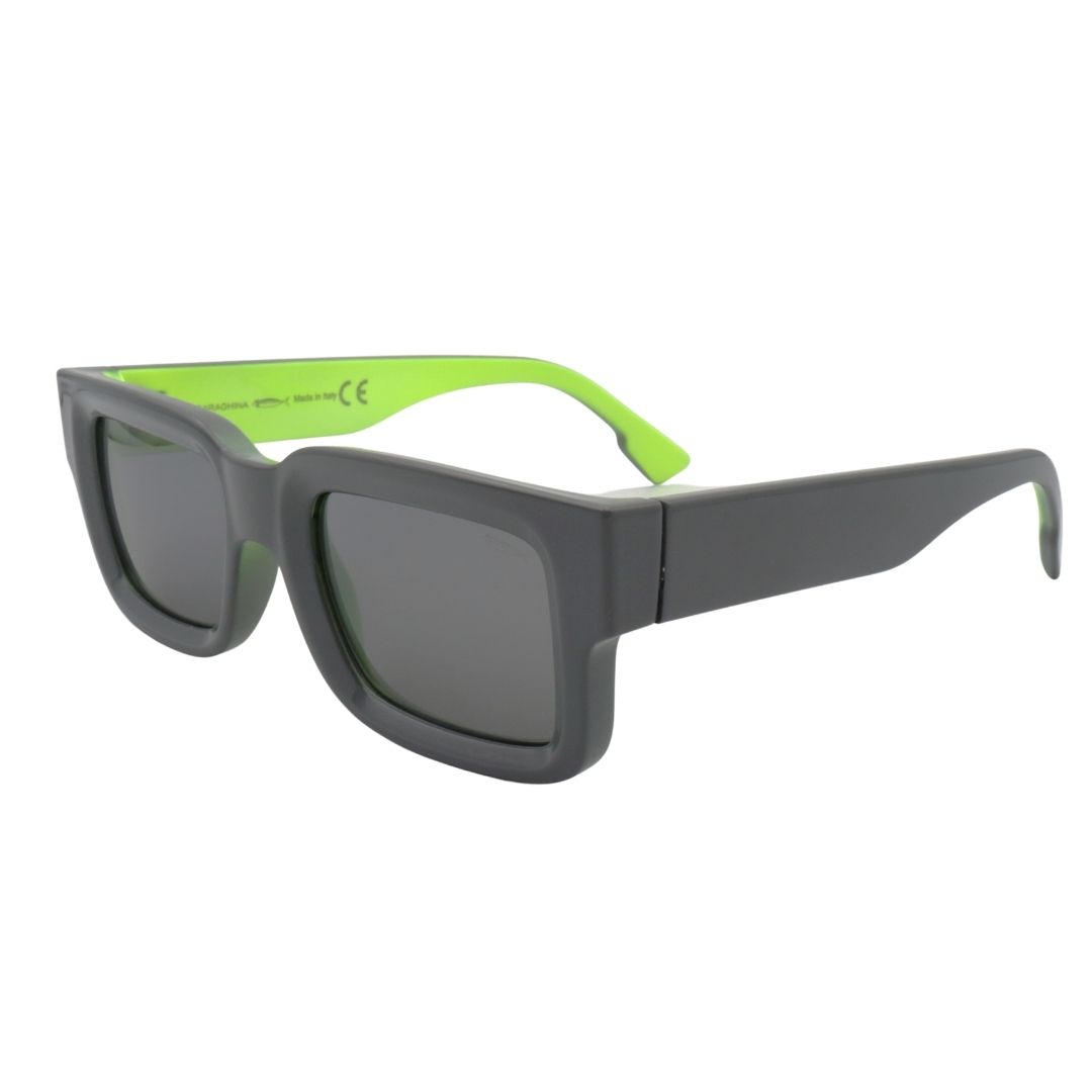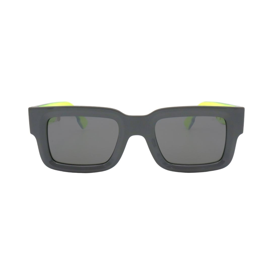 Forme e abbinamenti caratteristici rivisitati in chiave innovativa per mettere al mondo Burdèl un mix di futurismo e raffinatezza tipico del brand. Ispirazione alle forme rettangolari, accostamento di colori differenti che rendono unici e sofisticati tutti i modelli restando fedeli e coerenti al DNA del brand. Disponibile nella colorazione di nylon grigio con interno verde fluo e lenti sfumate grigie
