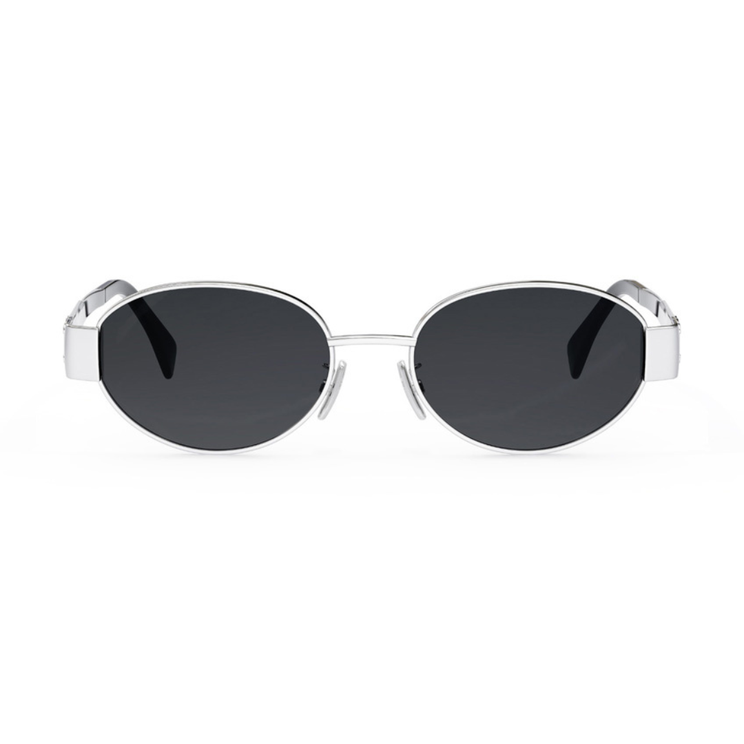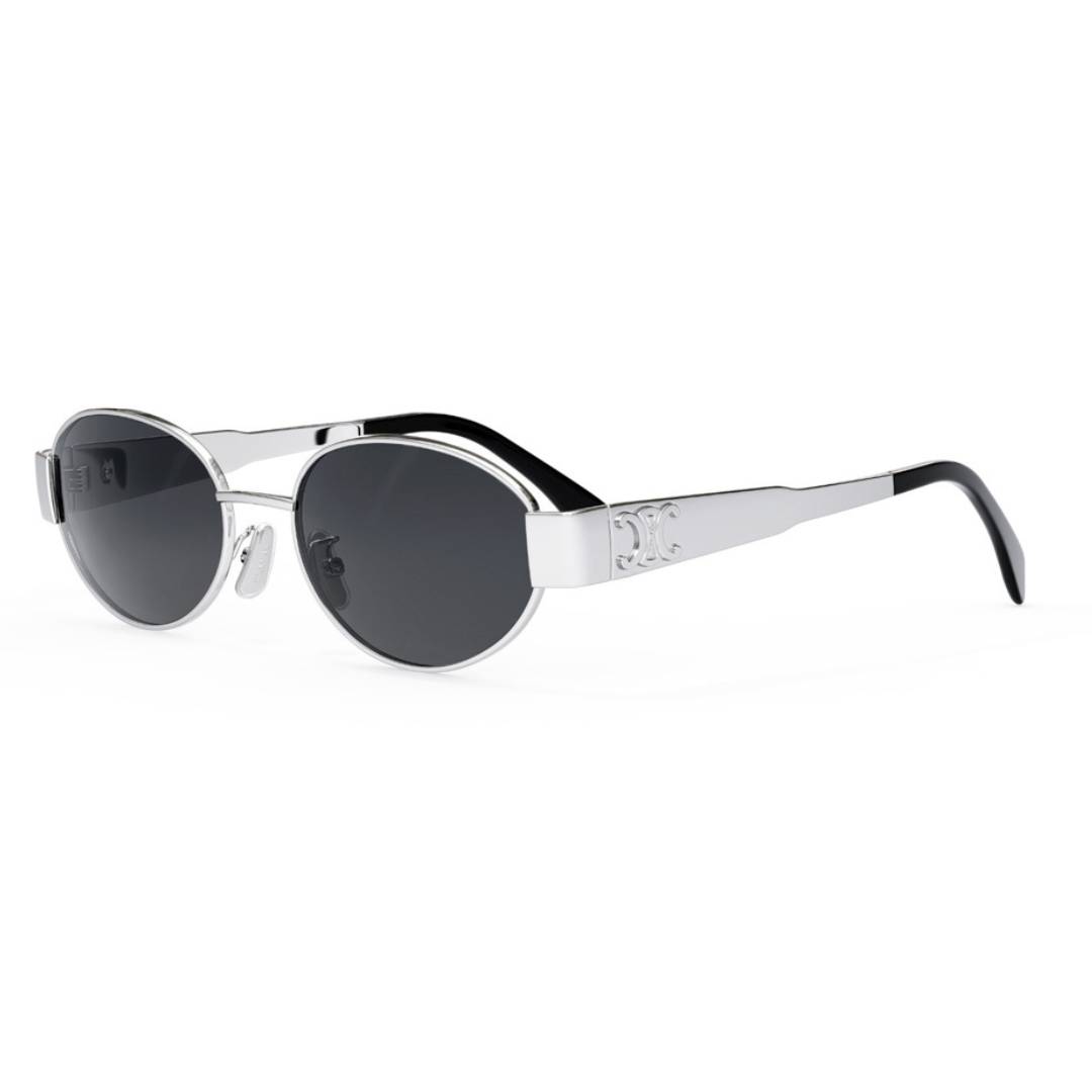 Elegante e dinamico CELINE in Metallo Argento Lucido, Lenti Grigio Organico