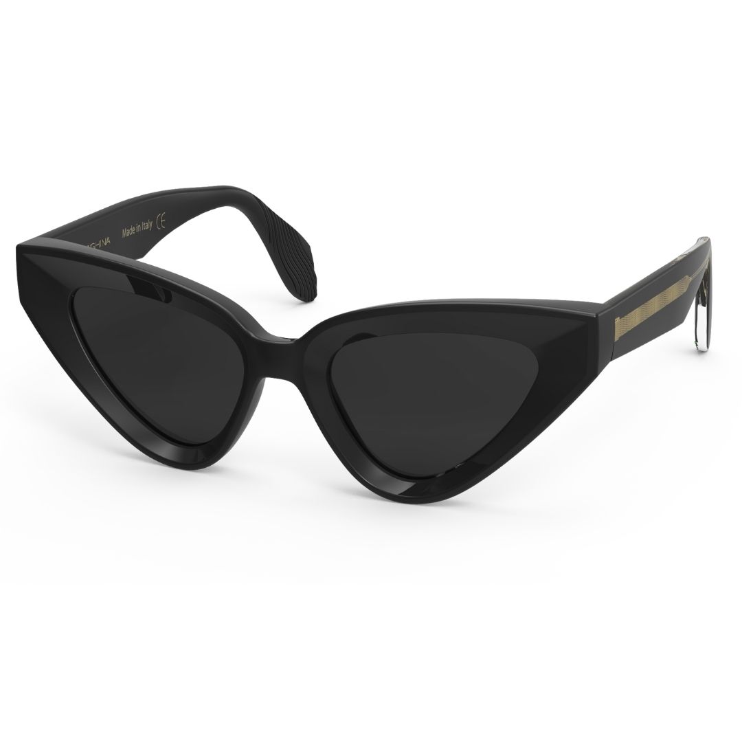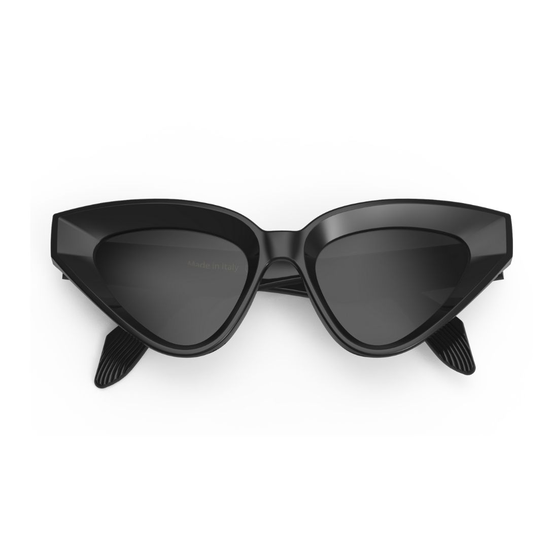 Occhiale da sole Saraghina modello Diavlet disponibile nella colorazione di propionato nero lucido e lenti grigie abbinate