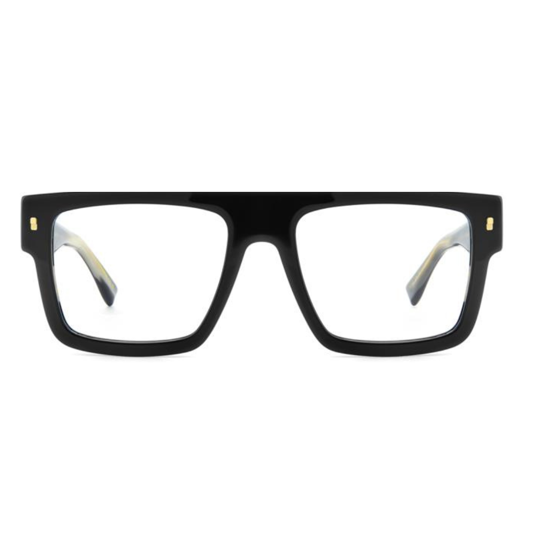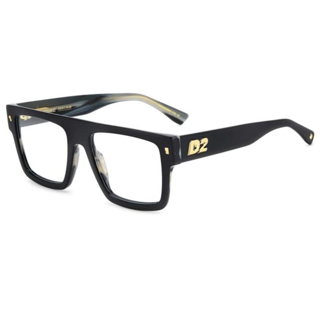 Occhiale Dsquared2 in acetato nero con logo oro sulle aste.