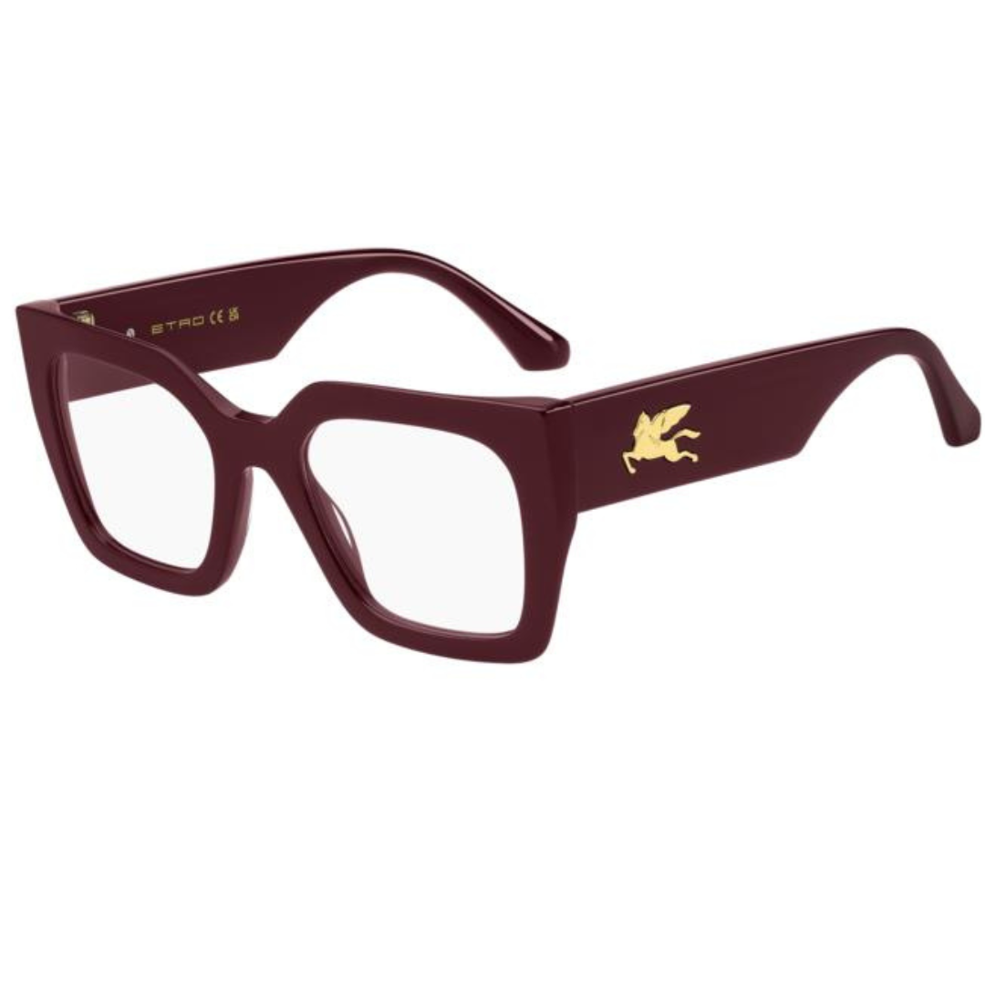 l modello Etromania rilegge l’heritage della Maison con uno sguardo contemporaneo. Realizzati in acetato sviluppato ad hoc per le collezioni ETRO e rifiniti con una speciale fresatura, questi occhiali da vista si distinguono per le aste scultoree e il logo Pegaso in metallo dal forte impatto visivo.