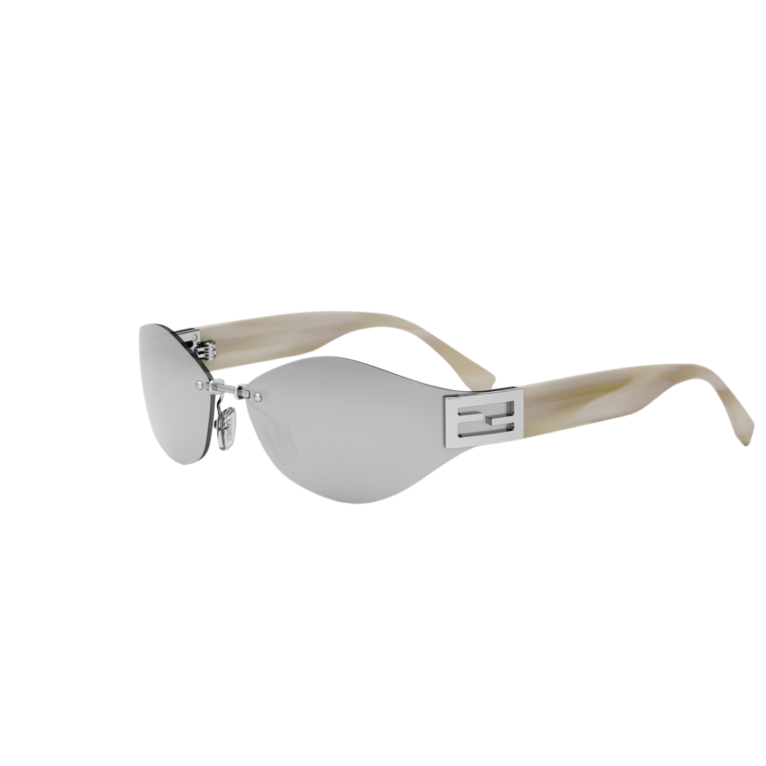 Occhiale Fendi nuova collezione della famiglia baguette. Ispirazione vintage innovativa. Lenti grigio specchiato