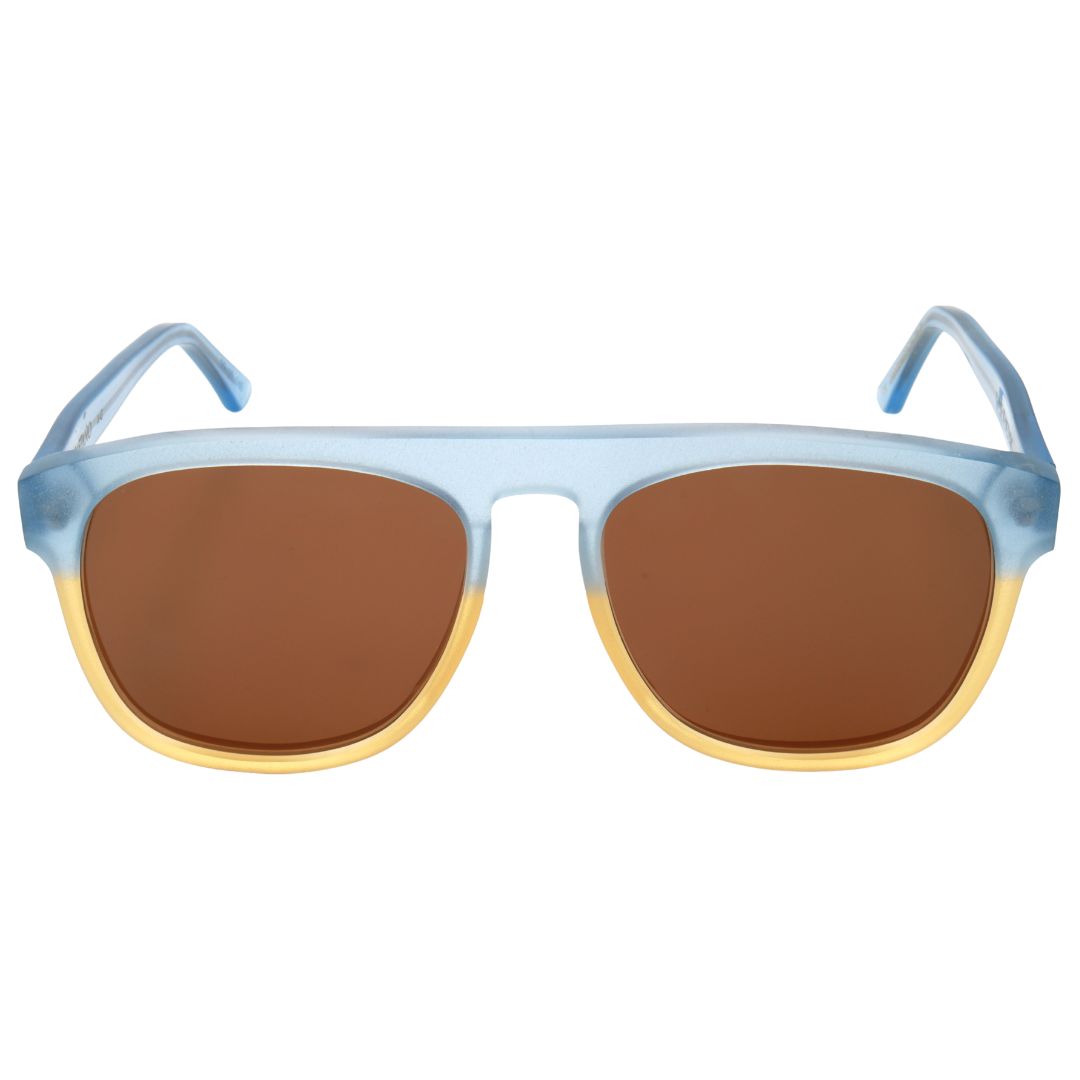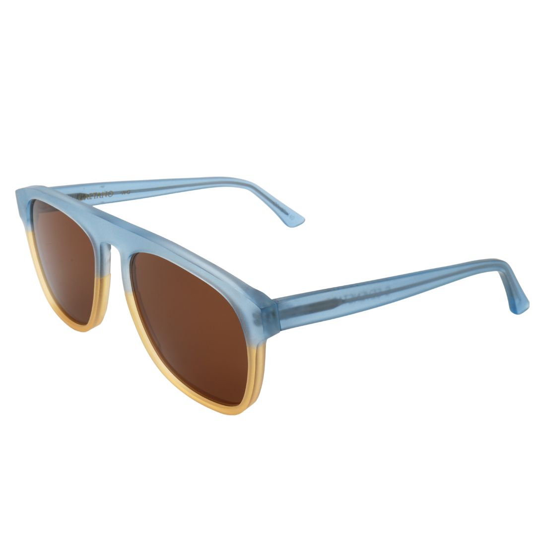 Modello unisex in acetato grezzo a forma semigoccia con top squadrato e ponte a chiave, dallo stile vintage. Realizzato dall’incollaggio di 2 lastre di acetato di cellulosa, fresco e vivace. In memoria del nonno Gaetano.