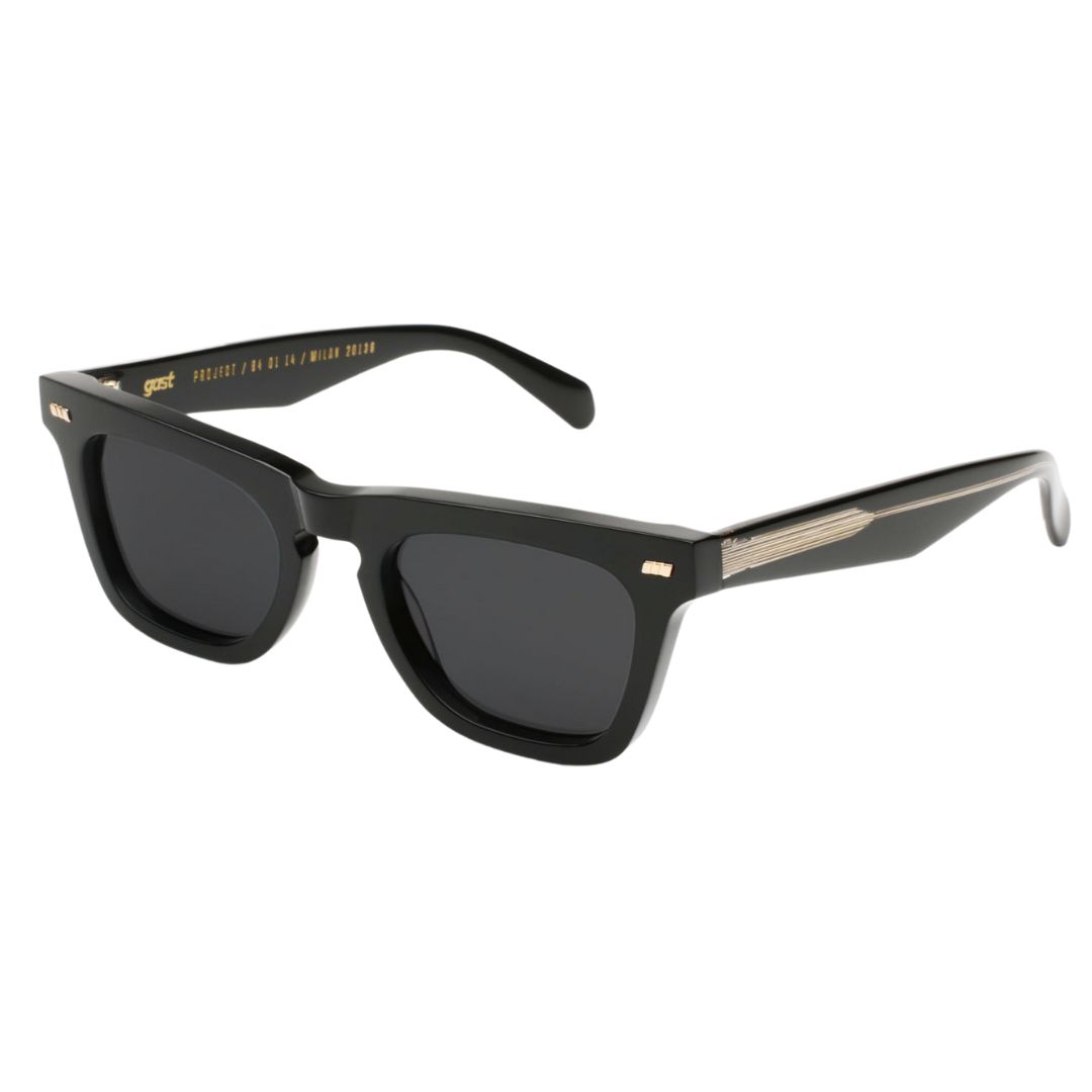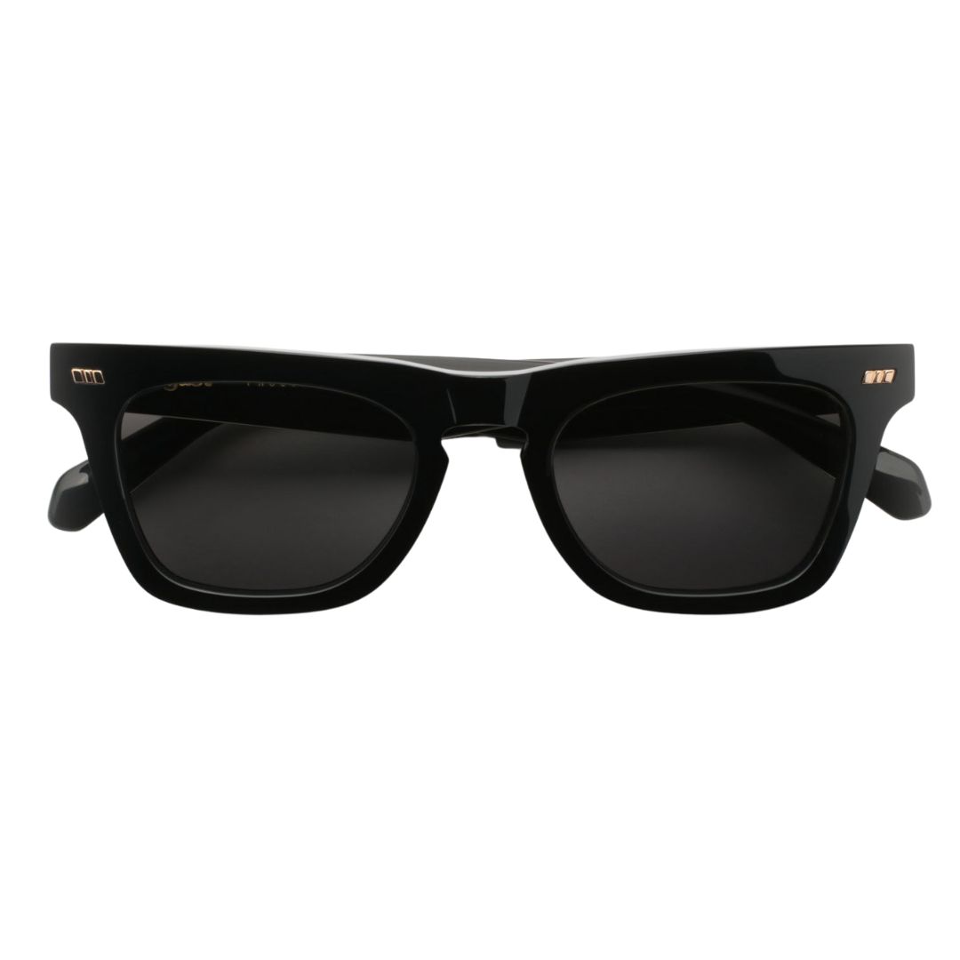 Occhiali da sole fatti a mano con montatura in acetato nero e lenti in nylon semipiatto nero con rivestimento interno antiriflesso โ protezione 100% UVA / UVB. Cerniere metalliche a cinque barili. Custodia rigida premium e panno per la pulizia in microfibra.
