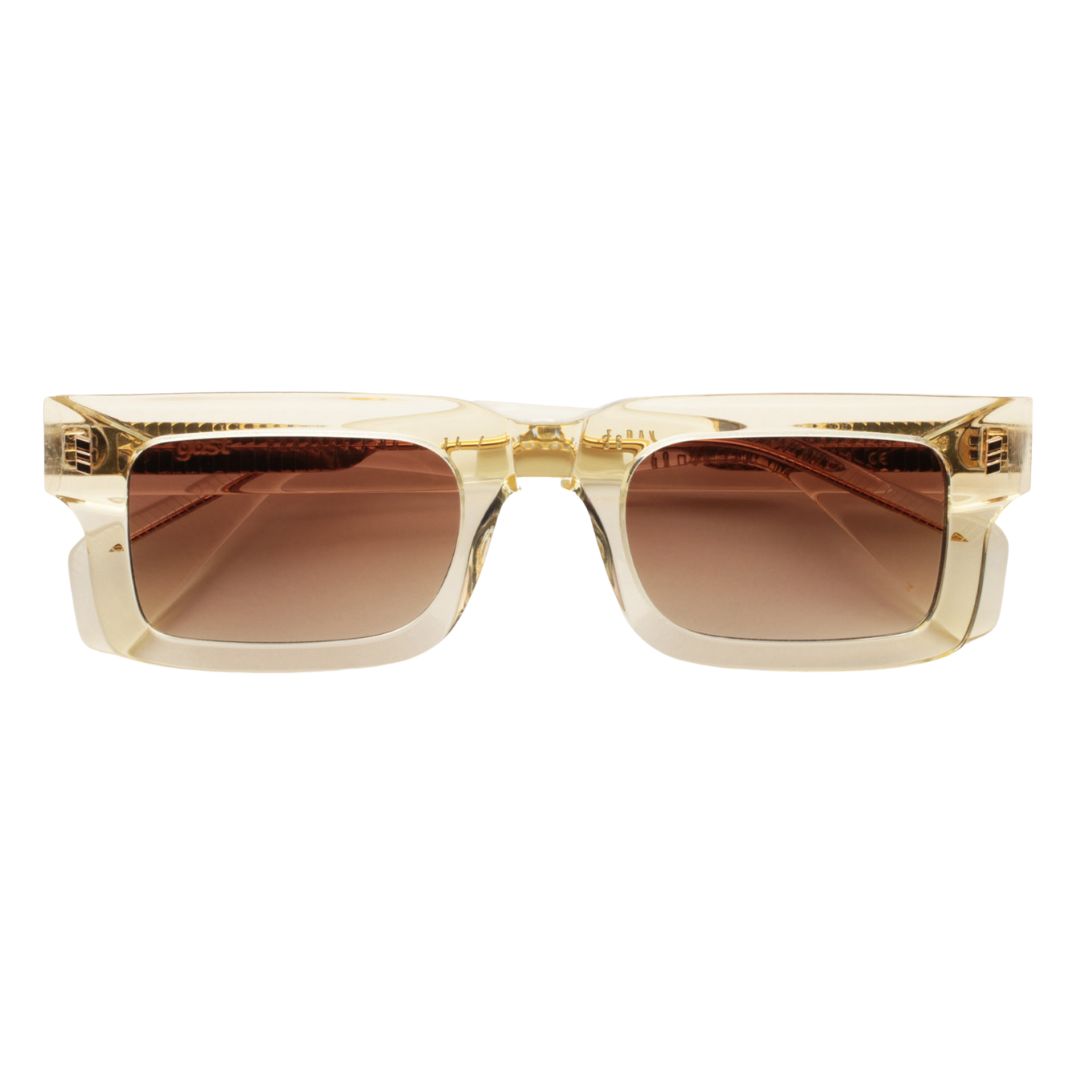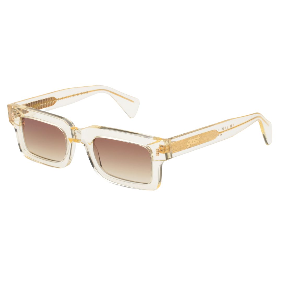 Occhiali da sole fatti a mano con montatura in acetato: champagne e lenti marroni, acetato nero e lenti nere o acetato tartarugato havana e lenti verdi. Tutte le lenti sono in nylon semi-piatto con rivestimento interno antiriflesso โ€“ protezione 100% UVA / UVB. Anima in filo metallico personalizzata con logo Gast impresso . Cerniere metalliche a cinque barili. Custodia rigida premium e panno per la pulizia in microfibra.