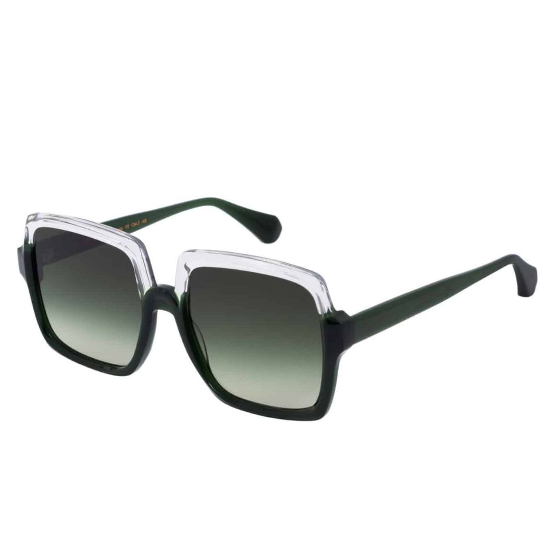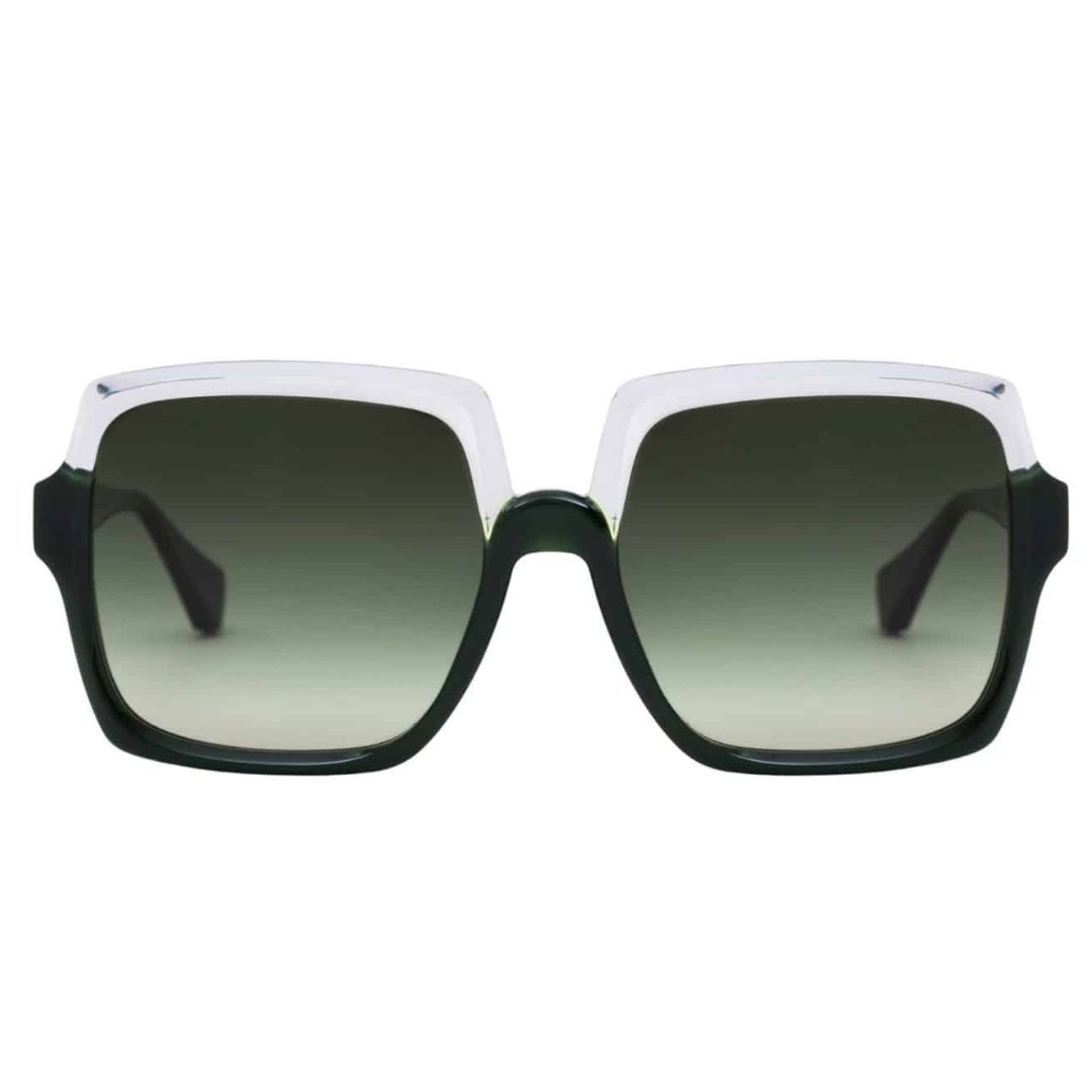 Presentiamo VIVIENNE, un modello quadrato oversized da donna prodotto in acetato che abbina due toni laminati di questo materiale. Lenti CR39 di alta gamma con la massima protezione ultravioletta e un alto comfort visivo. Montatura in acetato verde con finitura trasparente sulla parte superiore e lenti sfumate in verde
