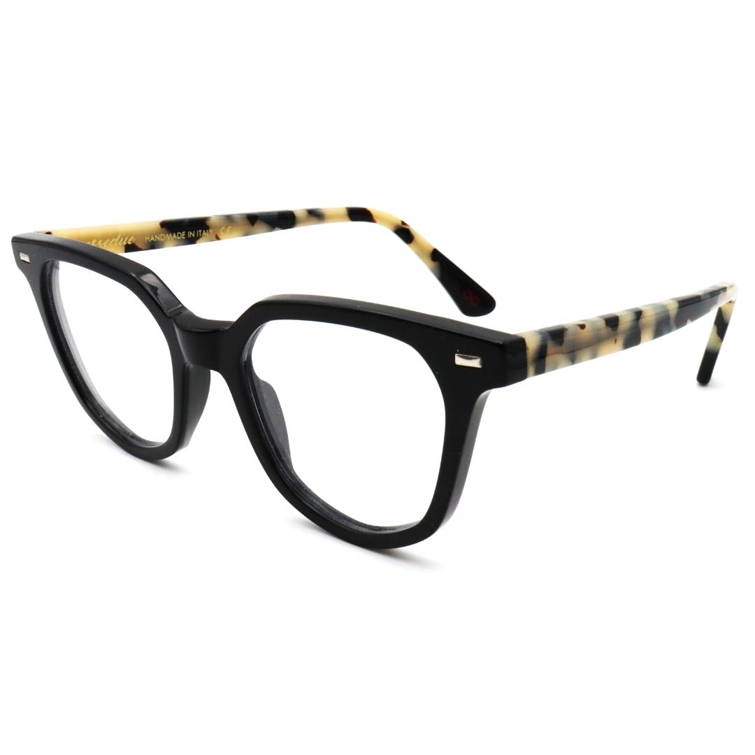 Gli occhiali Essedue sono il frutto di attenta progettazione su forme, dimensioni e proporzioni, a partire dalla rivisitazione dei modelli classici dellโocchialeria italiana. Lo studio del design รจ anzitutto la ricerca appassionata per la realizzazione di occhiali che siano confortevoli da indossare e belli da vedere. Questo modello si presenta in acetato nero, aste tartarugate avorio con una forma geometrica e lenti trasparenti