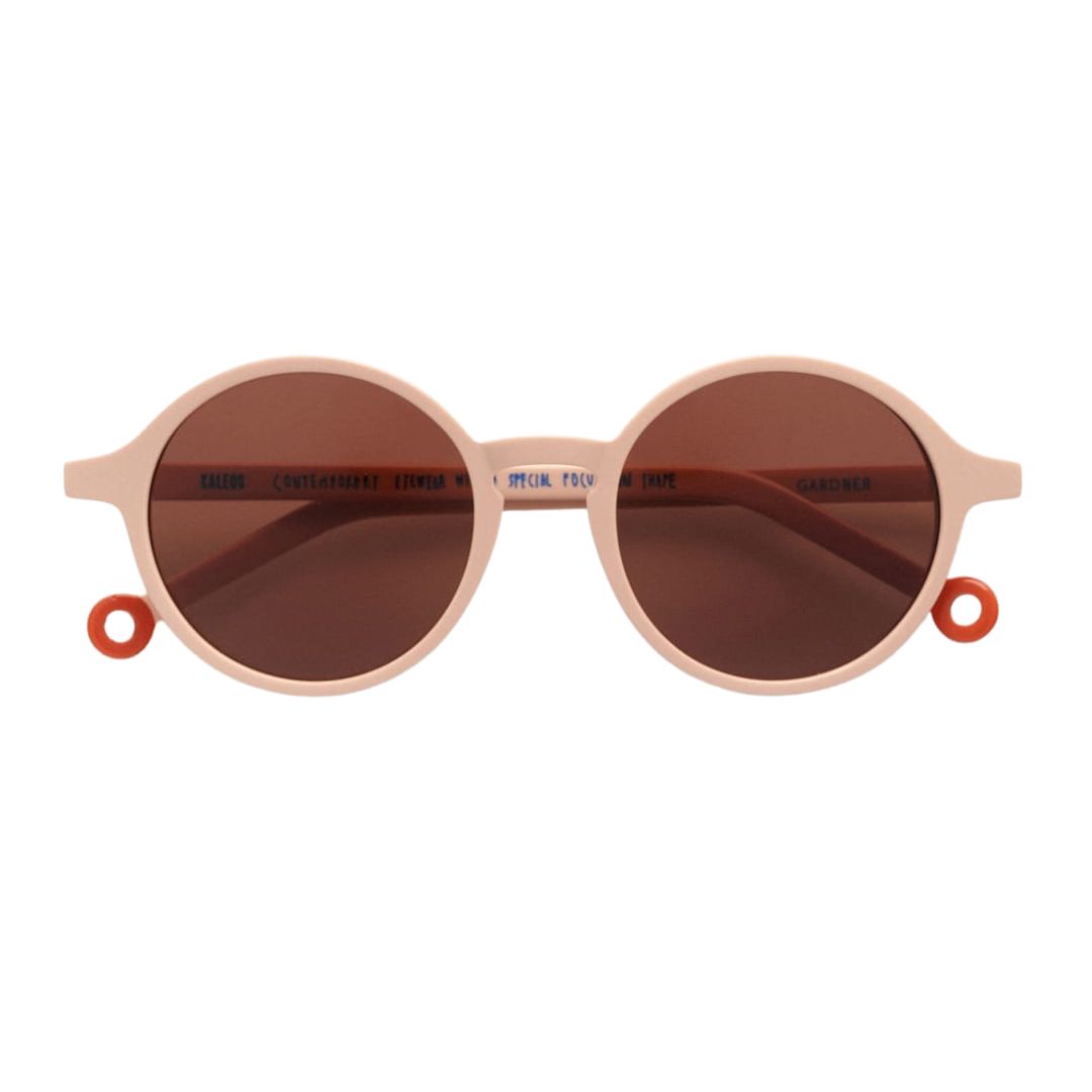 Occhiali da sole KIDS in acetato blu o rosa monocromatico. Forma rotonda. Aste in acetato con punte arrotondate in verde lime fluo o arancio a contrasto con occhiello per fissare la fibbia di una catena. Lenti blu scuro a 4 basi con protezione UV al 100% e trattamento antiriflesso. Lenti di categoria 3 e 4. Naselli in acetato incorporati. Fatto a mano.