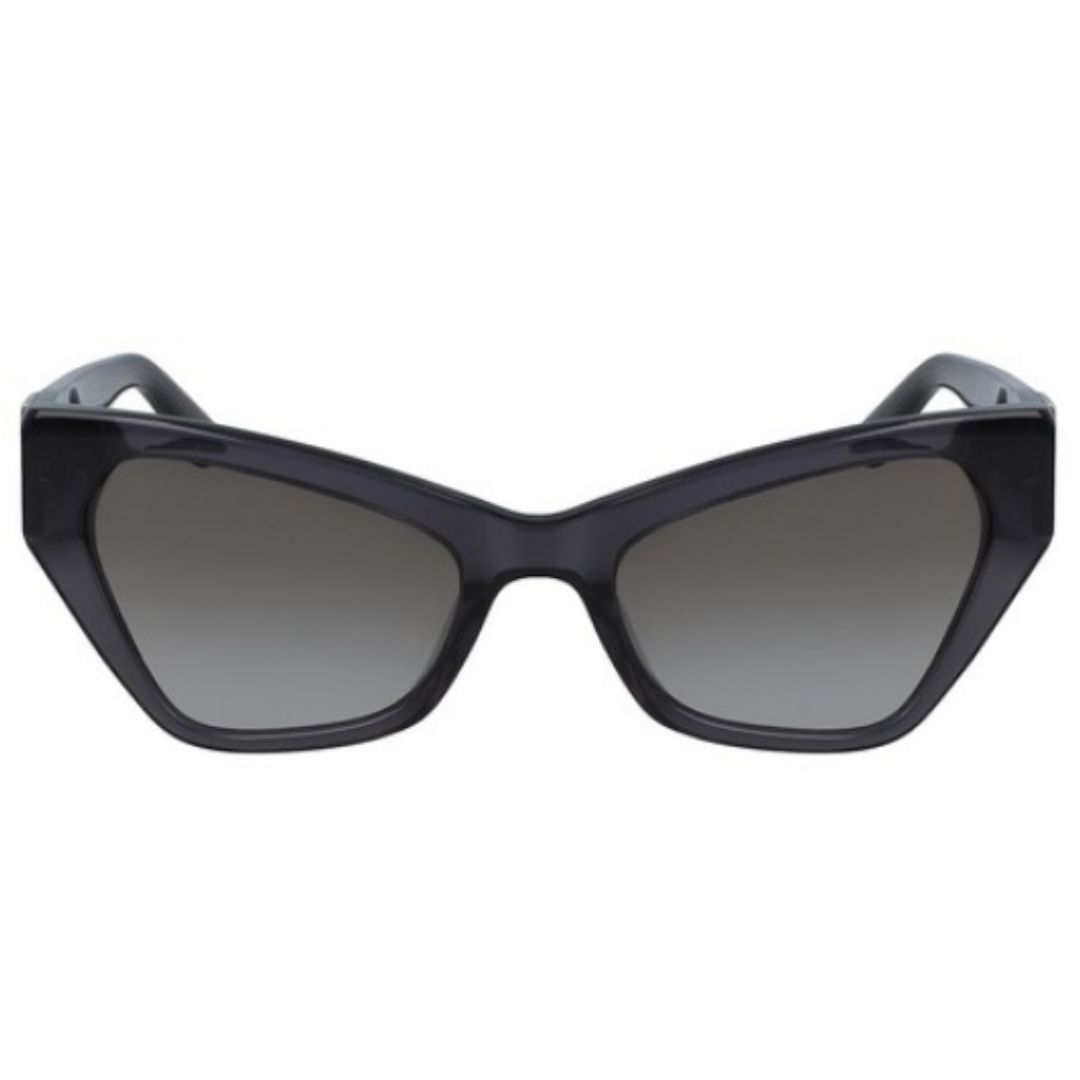 Le linee slanciate degli occhiali Karl Lagerfeld donano un tocco di eleganza ai classici occhiali da sole cat-eye. Questo occhiale da sole è disponibile in acetato grigio cristallo e lenti abbinate