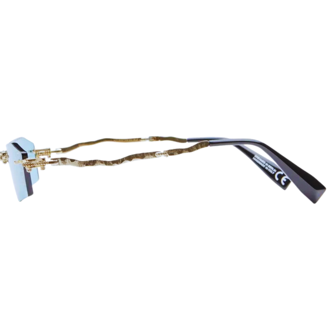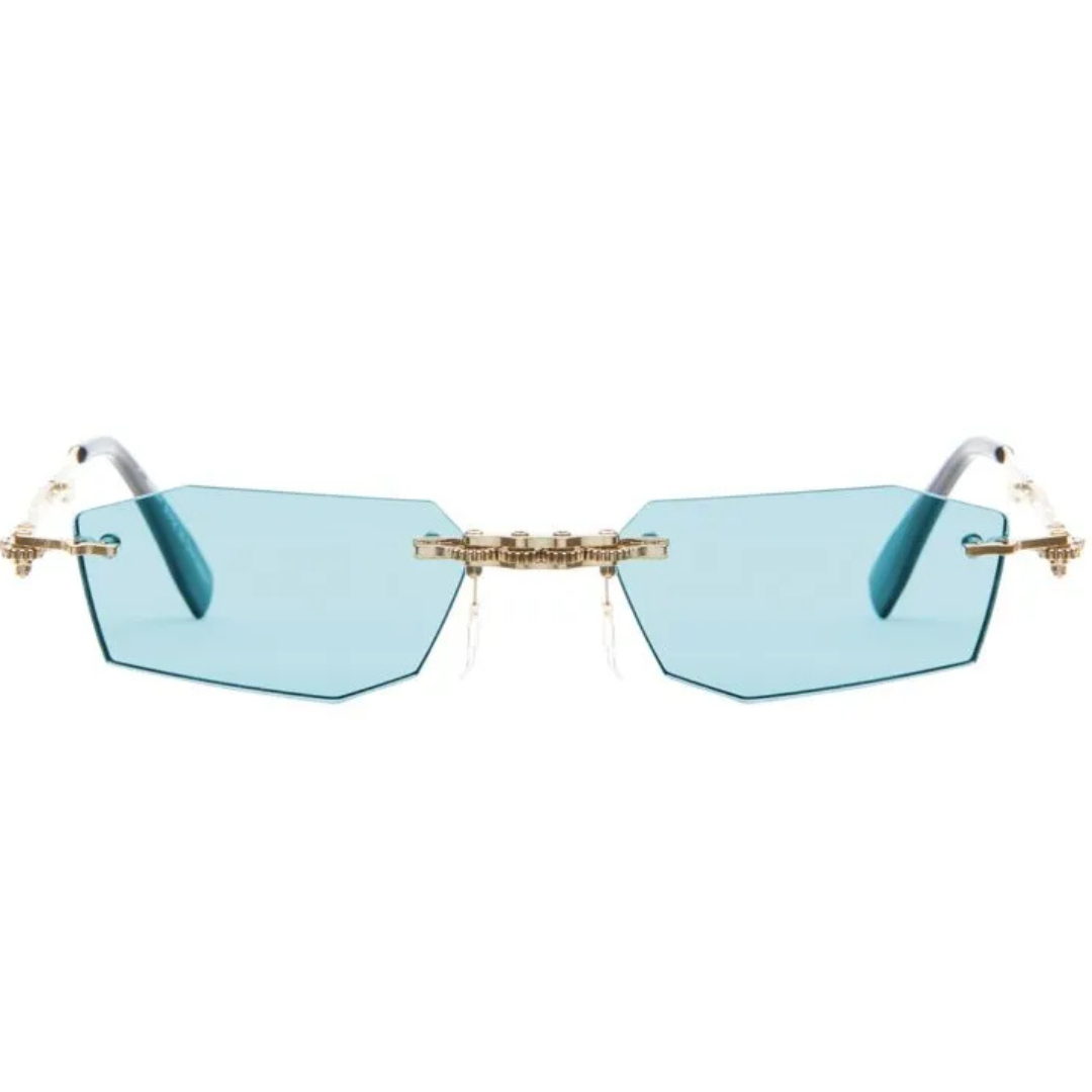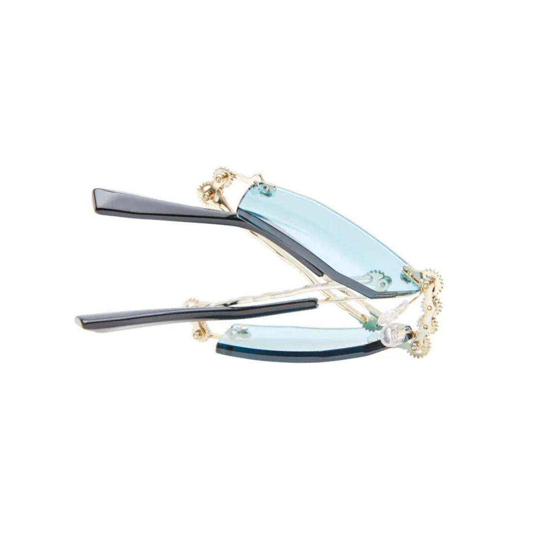 Occhiale Kuboraum pieghevole, glasant in oro con lenti verde acqua.