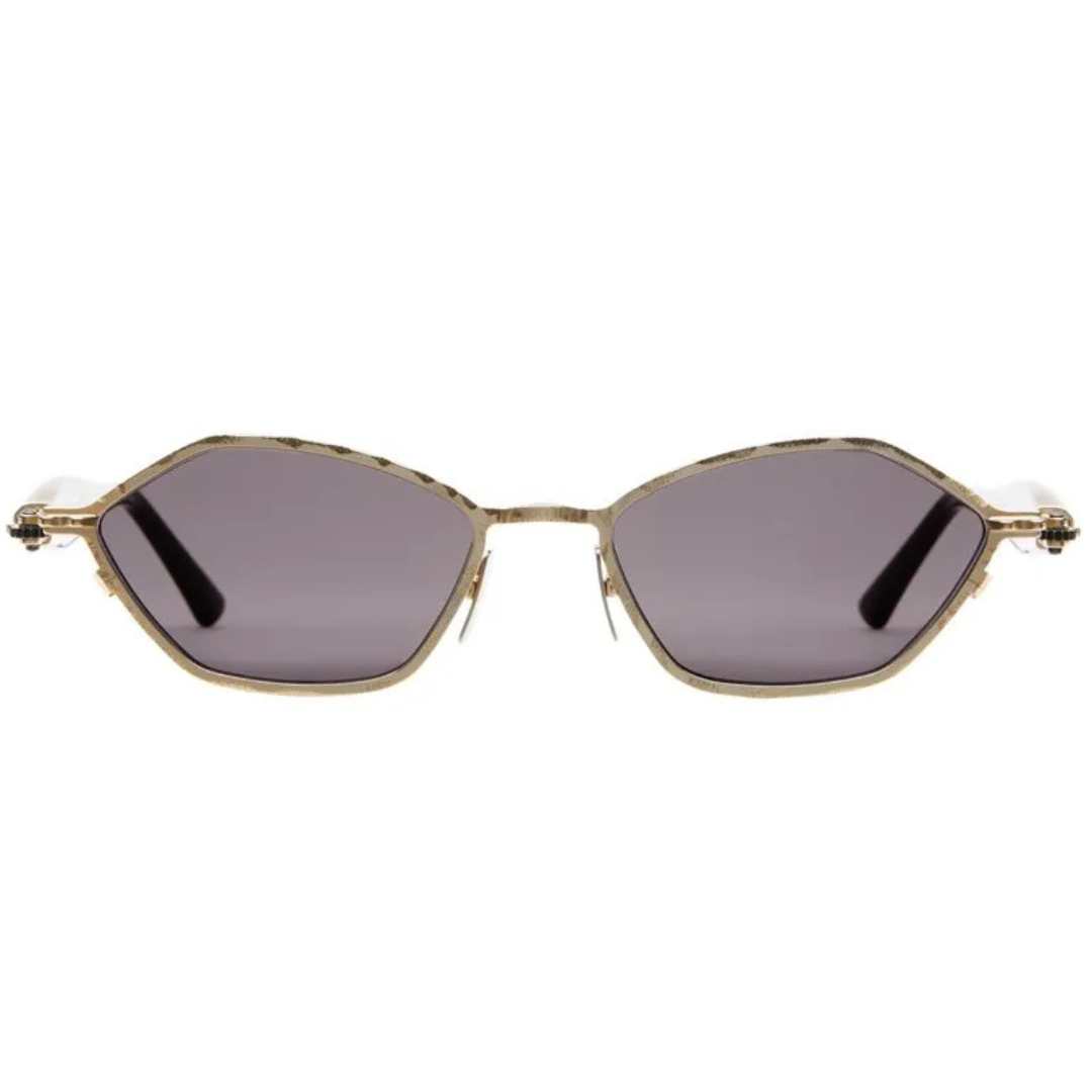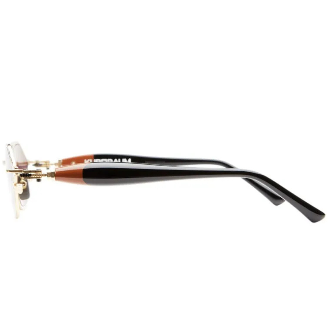 Occhiale Kuboraum con frontale in metallo oro e aste in acetato nero.