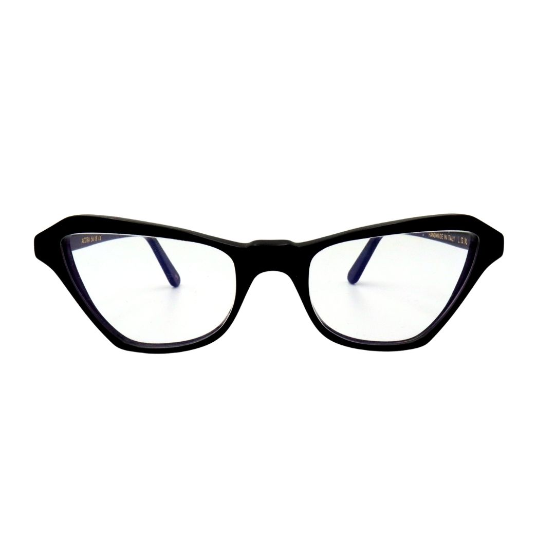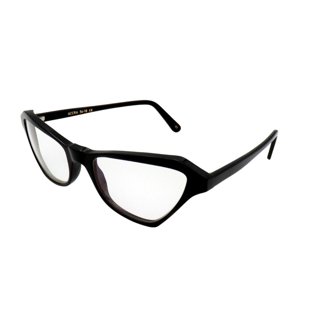Accra รจ una montatura cat-eye in acetato di cellulosa che con le sue linee taglienti conferisce un aspetto accattivante a chi lo indossa. Perfetto per la donna raffinata che non ha paura di osare con una nota stravagante, 100% Fatto a mano in Italia in acetato di cellulosa nero lucidato a mano e lenti trasparenti