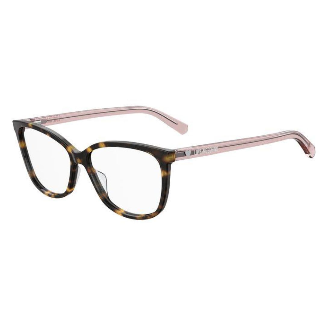 -20%Occhiale Love Moschino teenager adatto ai visi più piccini, Si presenta in un brillante acetato tartarugato Havana e lenti trasparenti