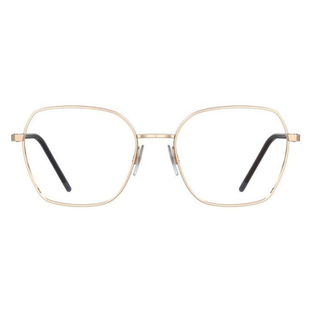 Montatura da vista in metallo color oro in forma squadrata e terminali neri
