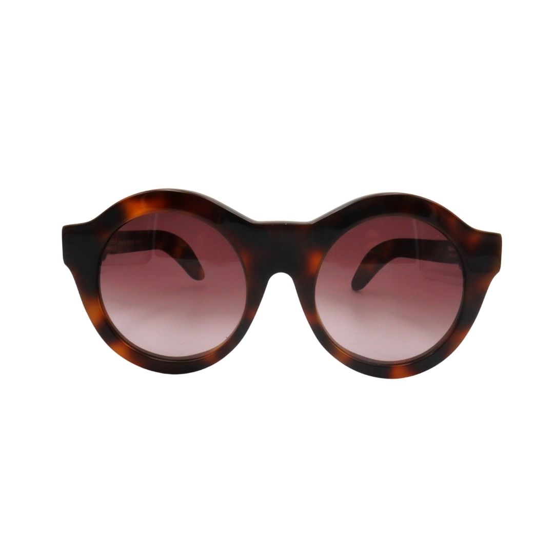 Occhiale da sole con montatura tonda in acetato tartarugato avana con lenti borgogna. Un occhiale dโimpatto per non passare sicuramente inosservato