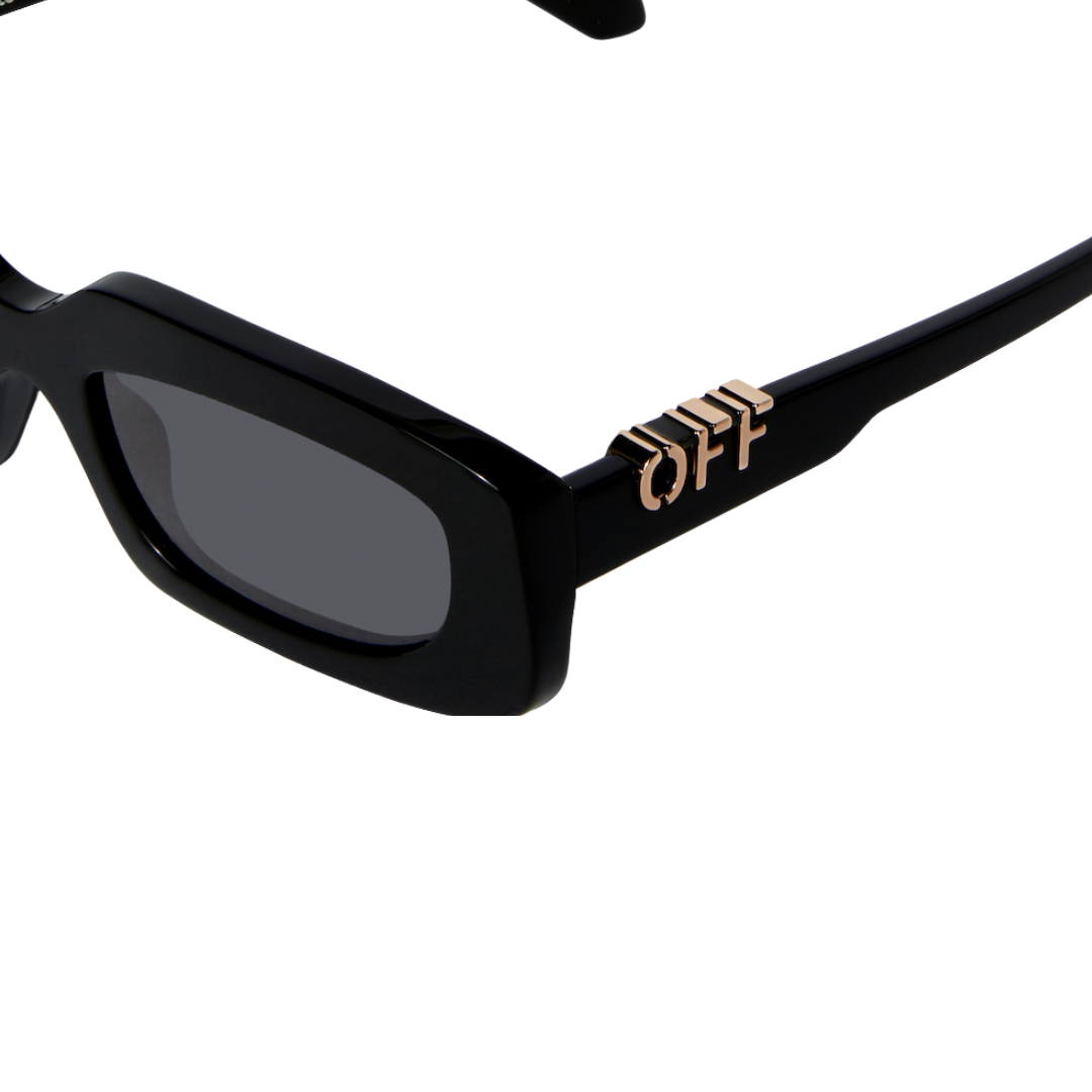 -40%Occhiale Off White in acetato nero, logo in oro sulla parte superiore dell’asta