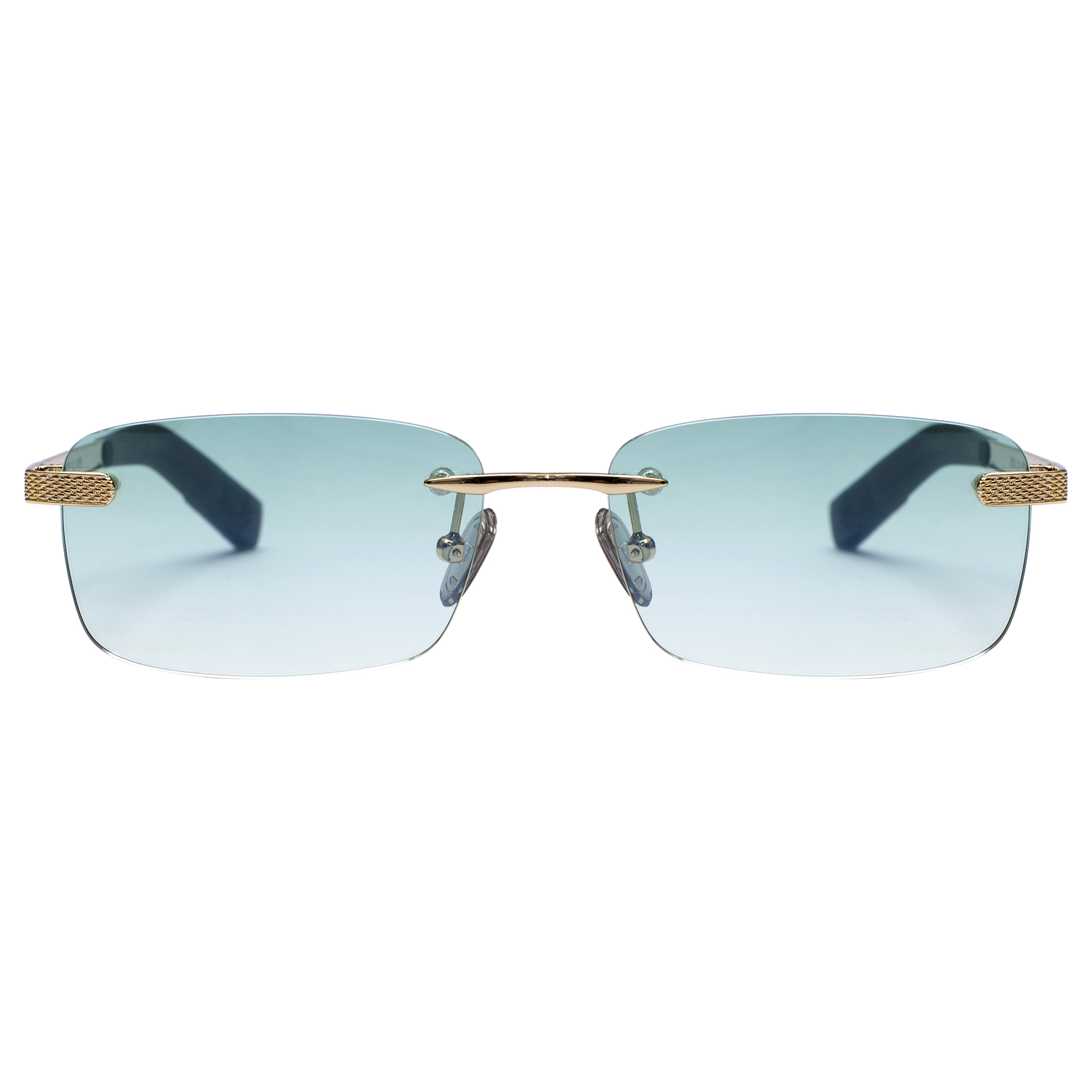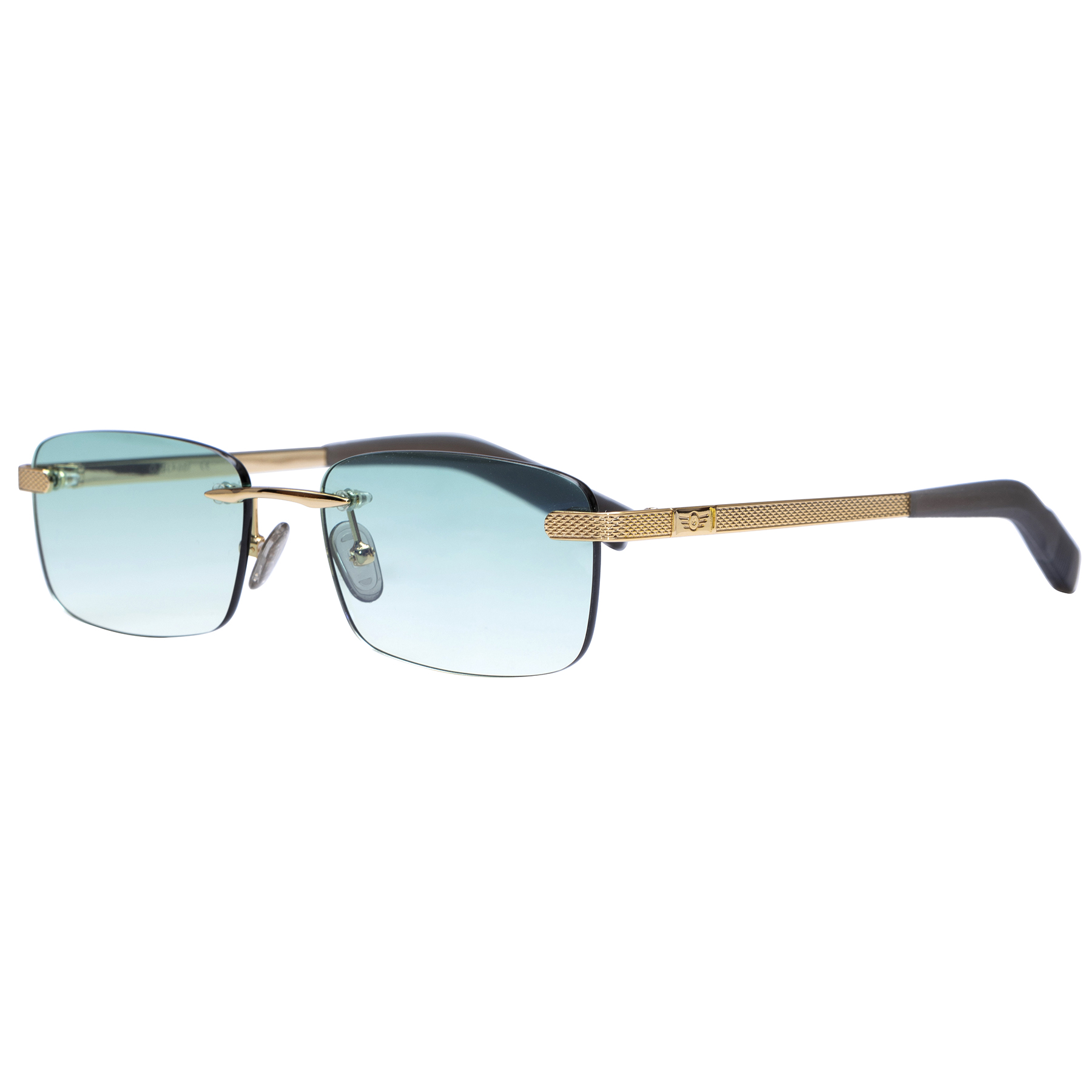 occhiale Old school oro in metallo, terminali grigi, lenti verdi.