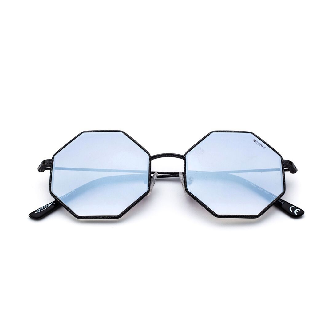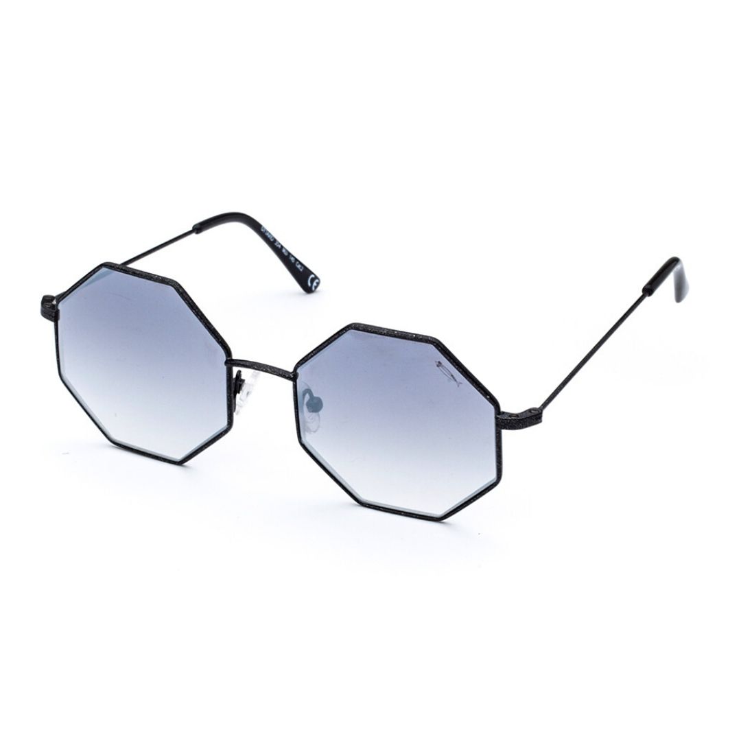 Modello Ottavio, con la sua particolarissima forma e la sua leggerezza e comoditร , non ha davvero bisogno di presentazioni. Perfetto per chi non ama prendersi troppo sul serio, รจ tra i modelli piรน scherzosi della collezione, in pieno stile Saraghina. In metallo nero glitterato con lenti flash grigio con trattamento antiriflesso interno