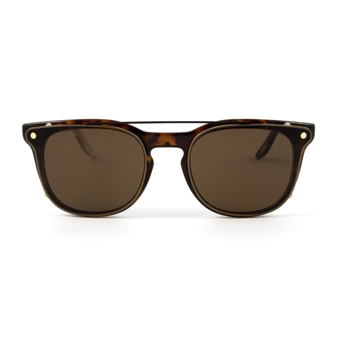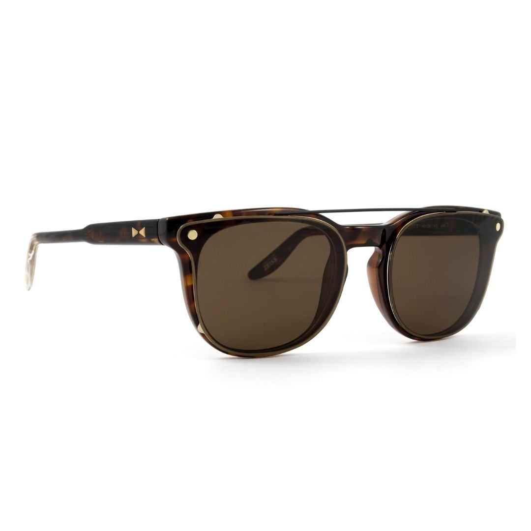 Occhiale da vista Snob con clip da sole, modello Paron disponibile nella colorazione di acetato tartarugato avana e clip abbinato