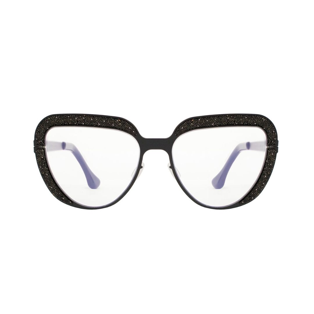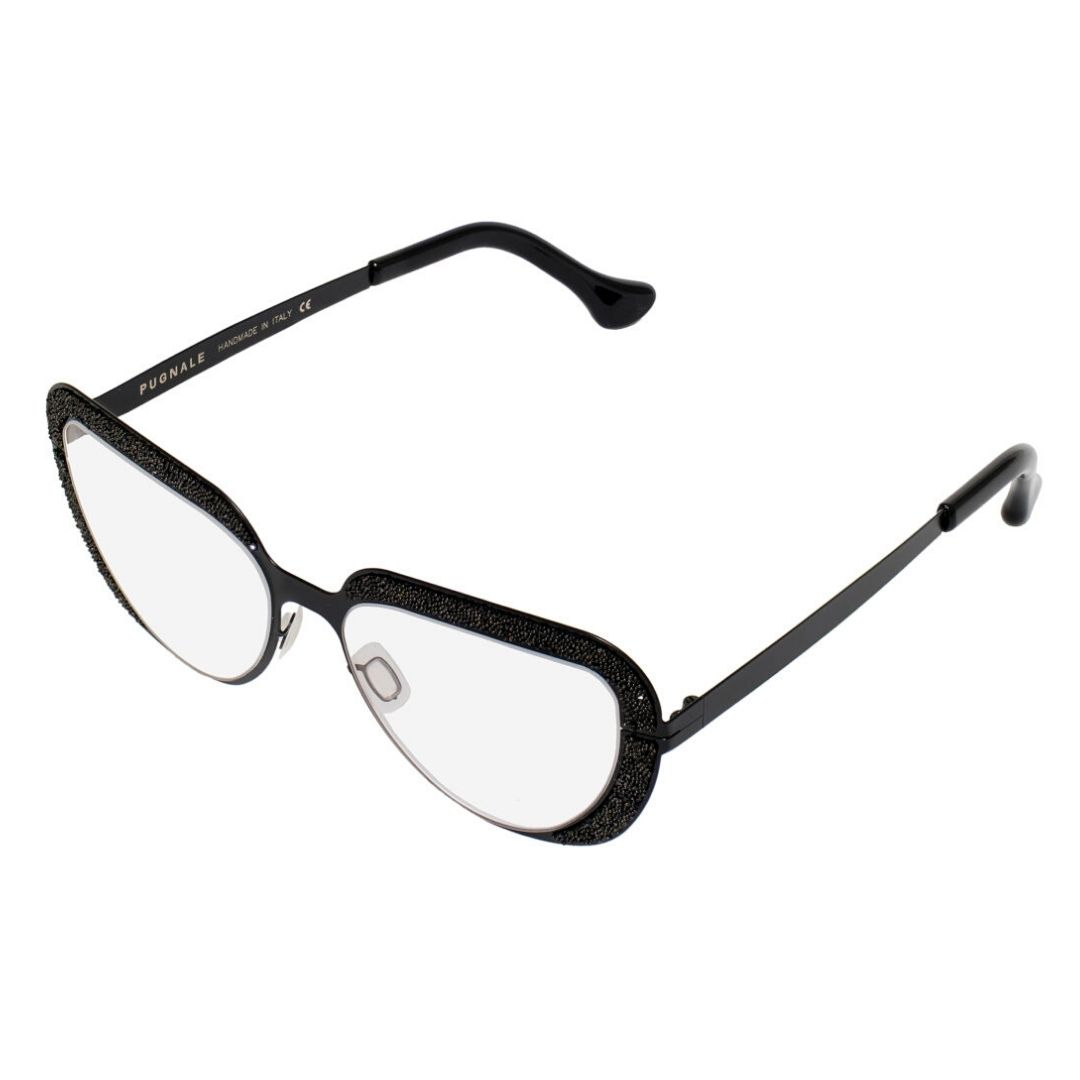 Profondamente innamorato del fashion design e della sfrenata passione per lโeyewear e il lusso in generale, Emanuele Pugnale, proprietario e designer di โPugnaleโ si รจ ispirato a utilizzare quelle tecnologie applicate allโindustria aerospaziale, automobilistica e biomedicale nel mondo dellโeyewear della moda e del design. Questa montatura si presenta con una forma morbida ovale in metallo nero con inserti in tessuto di cristallo Swarovski. Interamente fatto a mano in Italia