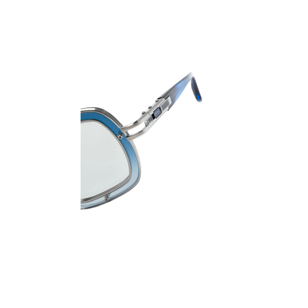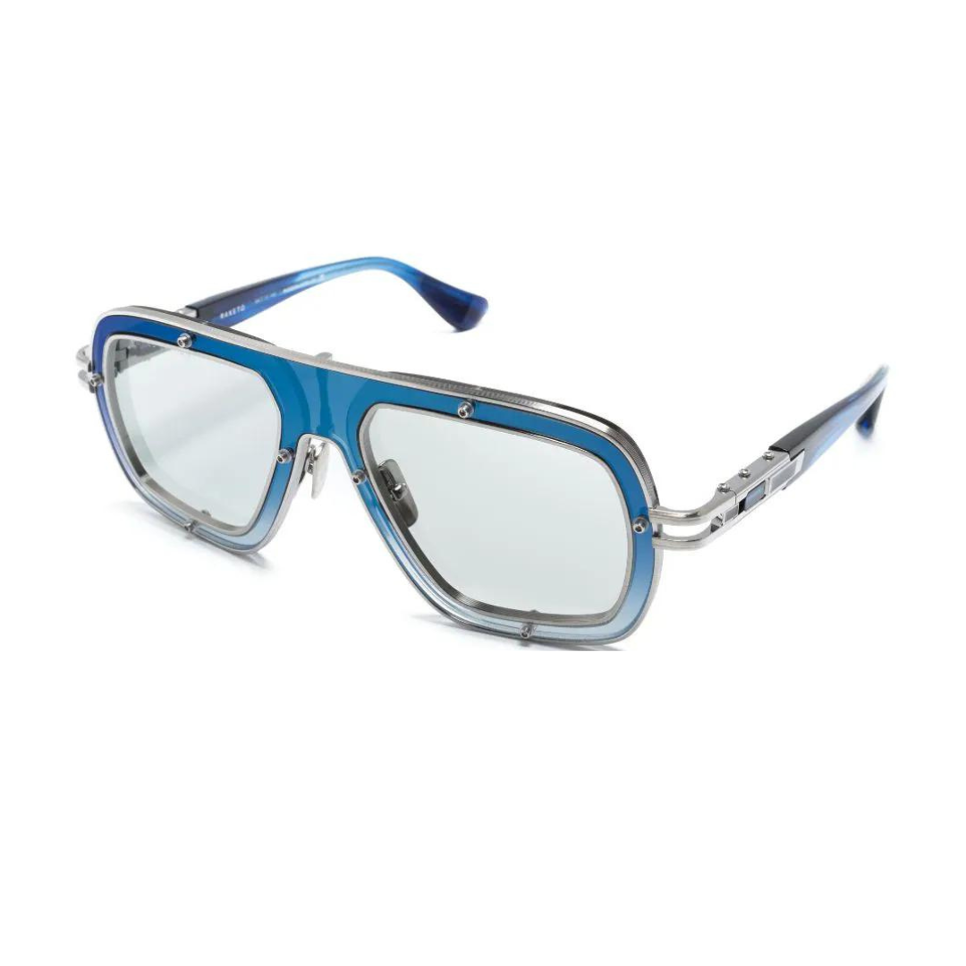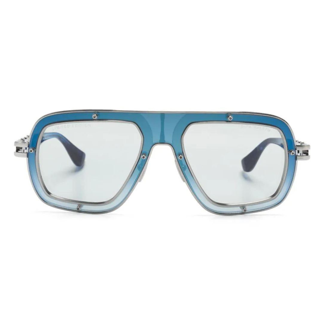 Occhiale Dita limited edition ben strutturato con particolari aste in grigio e blu.