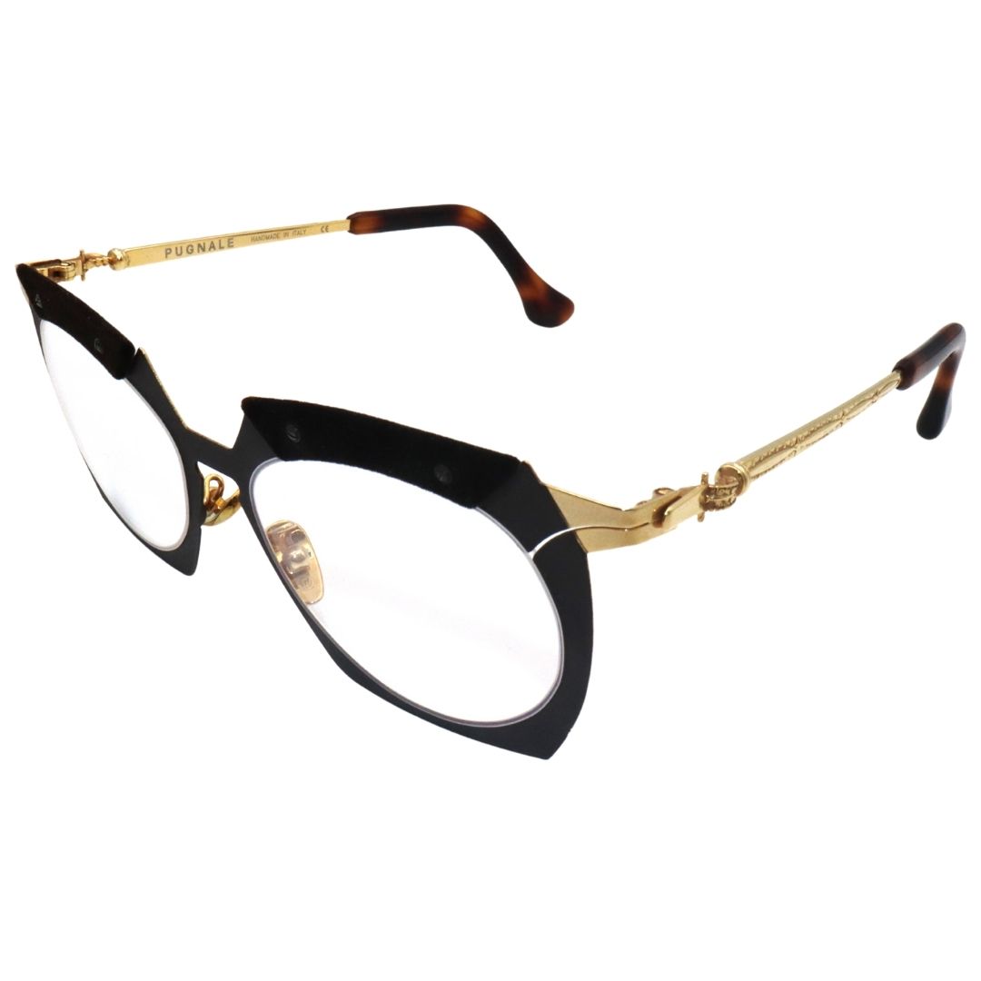 Profondamente innamorato del fashion design e della sfrenata passione per lโeyewear e il lusso in generale, Emanuele Pugnale, proprietario e designer di โPugnaleโ si รจ ispirato a utilizzare quelle tecnologie applicate allโindustria aerospaziale, automobilistica e biomedicale nel mondo dellโeyewear della moda e del design. Gli occhiali, sono dettagliati in modo da definire l’intero look, coniugando perfettamente funzionalitร e stile. Questo modello si presenta con una montatura in titanio marrone scuro con frontale effetto velluto, terminali in acetato tartarugato avana e lenti trasparenti. Interamente fatto a mano in Italia
