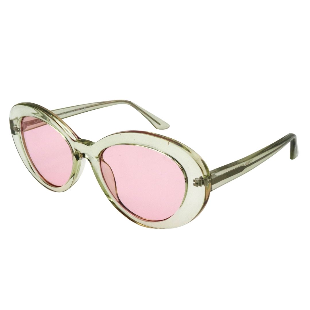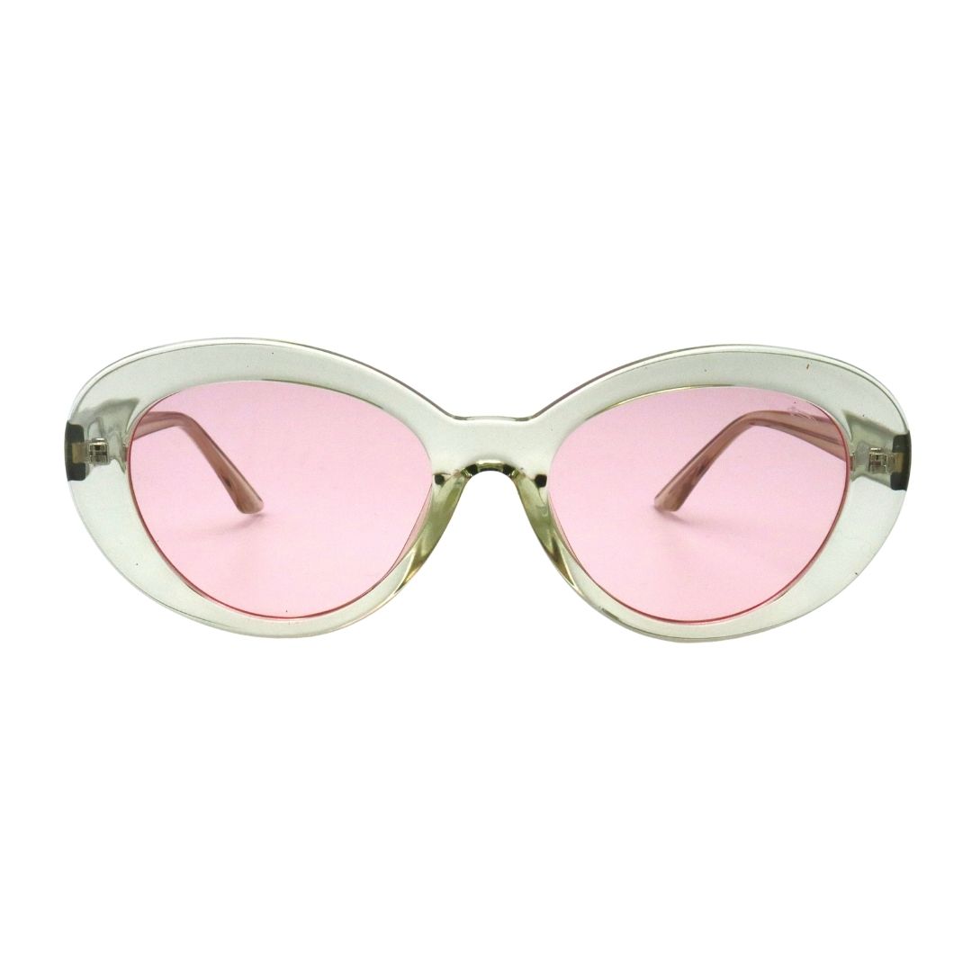 Occhiale da sole Saraghina modello Gustavo si presenta in una montatura di nylon verde menta cristallo lucido con delle lenti rosa. Progettato e realizzato in Italia, da artigiani specializzati che utilizzano esclusivamente materiali e componenti di prima qualitร .